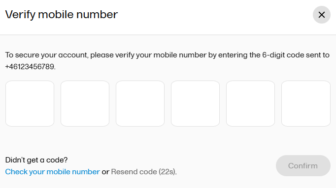 Note! A new authentication code can be requested up to 5 times and is reset to 5 requests after a successful user login.