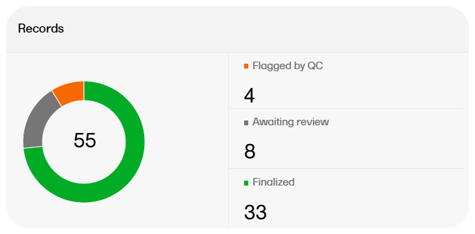 It is possible to filter the records metrics that are displayed by TMF level, sites, and milestones. To filter the records metrics, select one or more of the filters at the top of the page to open the dropdown, and select the options you would like to filter by. The records metrics will be updated with each filter that is applied.
