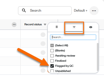 Select the filter tab, and then deselect all statuses except Flagged by QC.