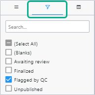 Select the filter button, and then deselect all statuses except Flagged by QC.
