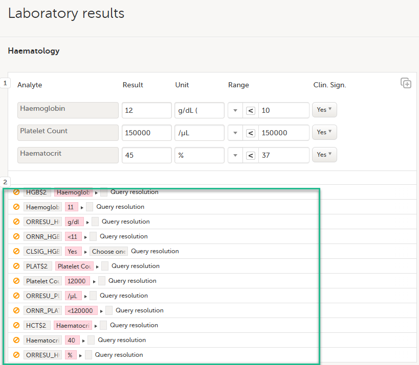| CRA | Clinical Research Associate (CRA) によるクリニカルレビューのインジケーター。 実行済みであれば緑のチェックマークがつき、レビュー待ちであればグレイになります。 |