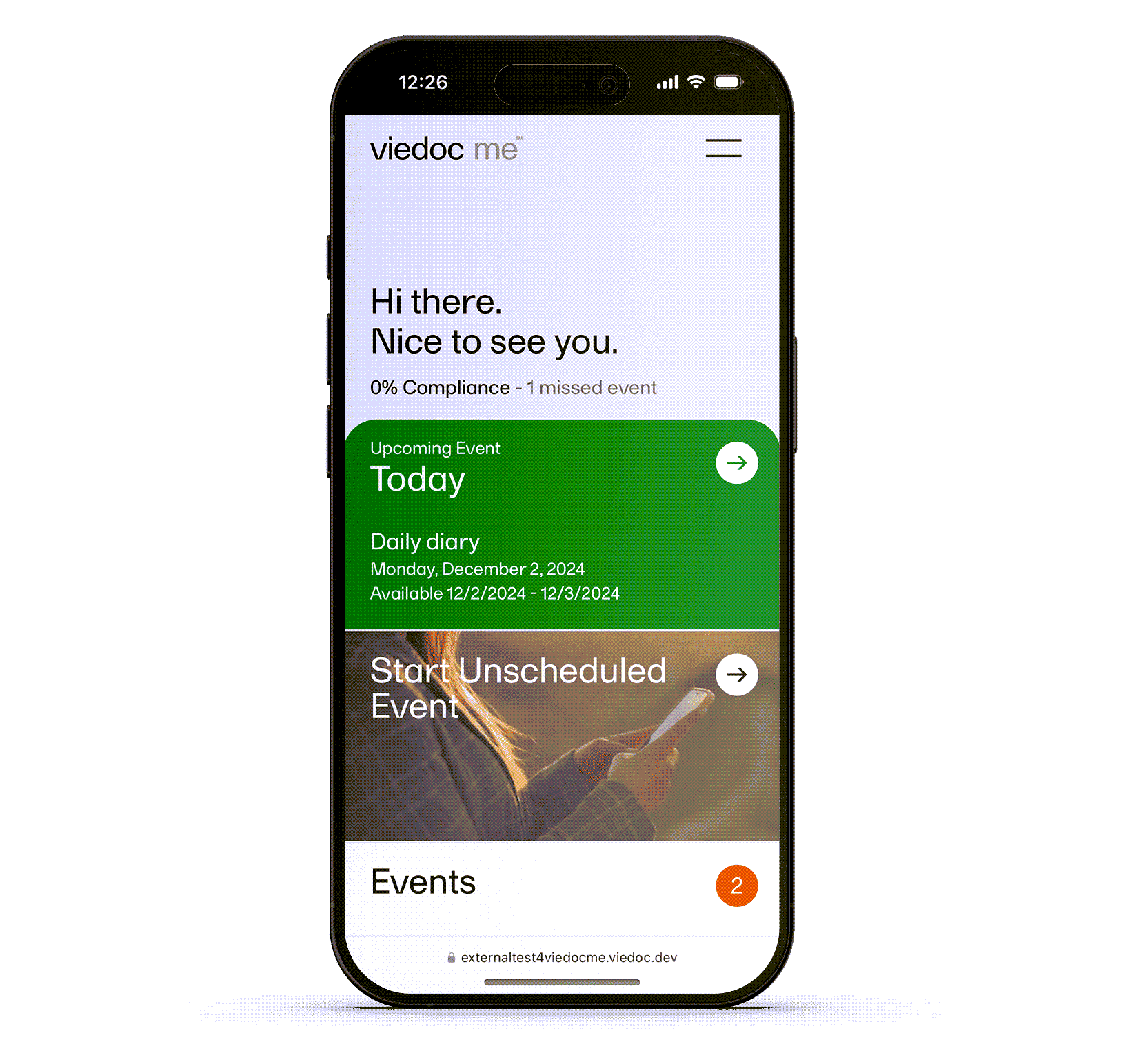 Viedoc Me is Viedoc's Electronic Patient Reported Outcome (ePRO) application. Viedoc Me is activated in a study simply by setting an event to subject-initiated in the study workflow. Thus, Viedoc Me is set up in the same designer application as the standard forms. A license is needed to use Viedoc Me but a license is not required for designing events.