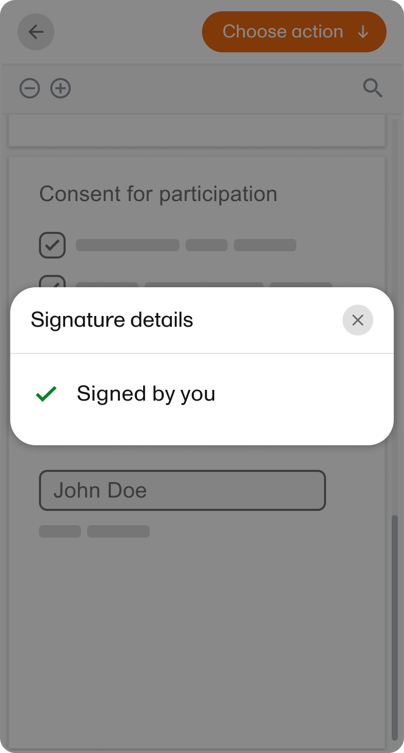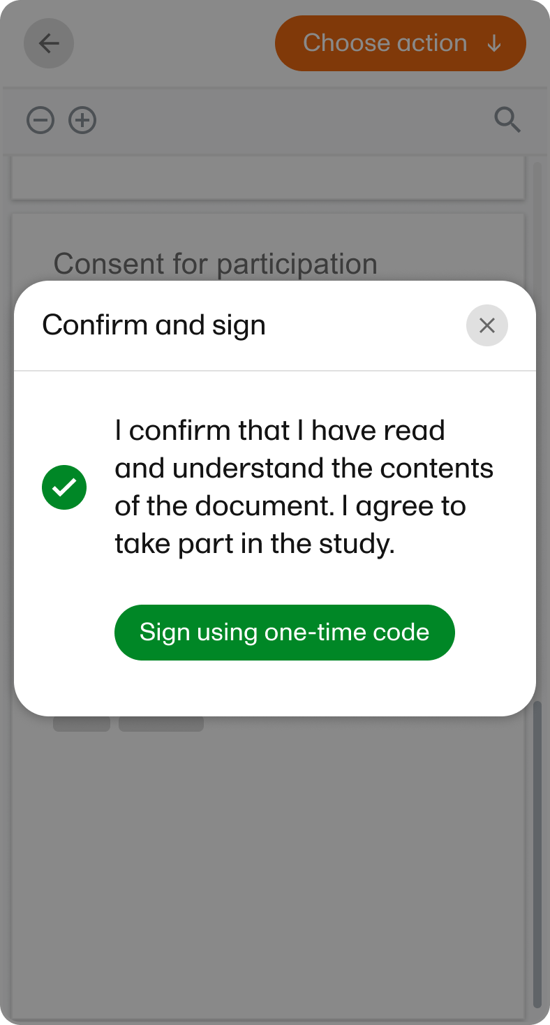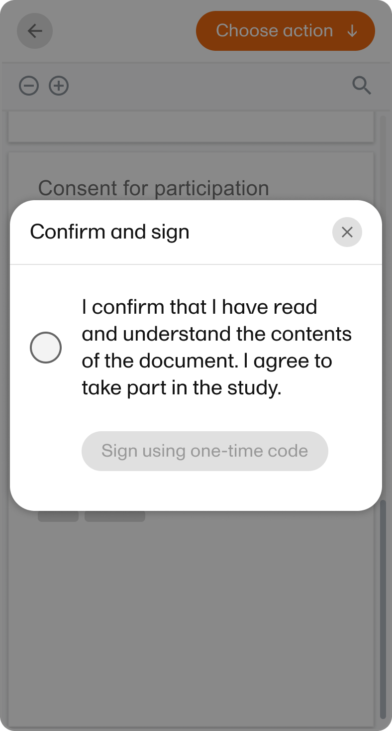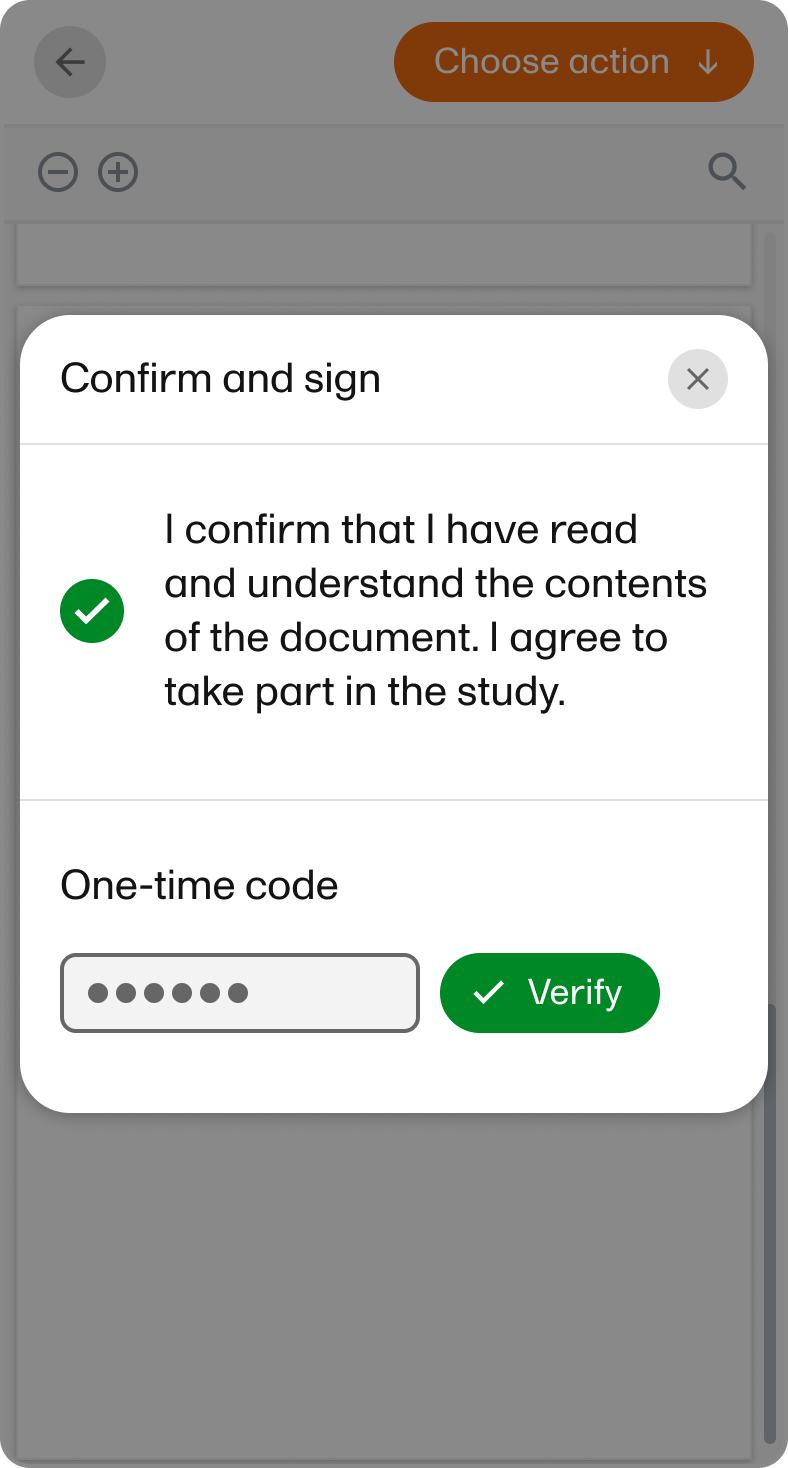 4. In the top right corner, click the orange 'Choose action' button and click 'Confirm and sign'.