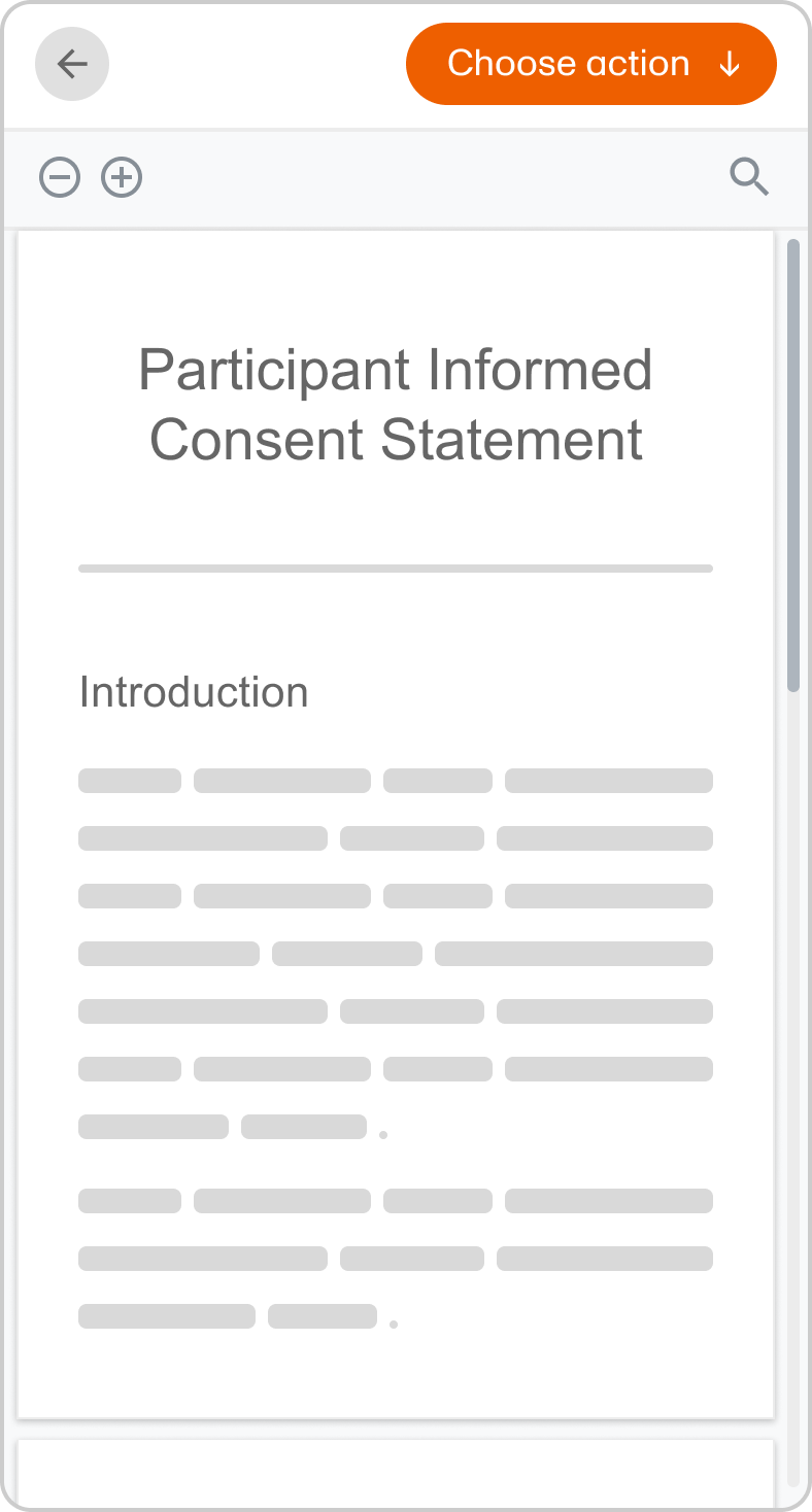 1. The first screen in the consent application displays your documents. This study requires you to sign only one consent document. Click on the document name to open the document.