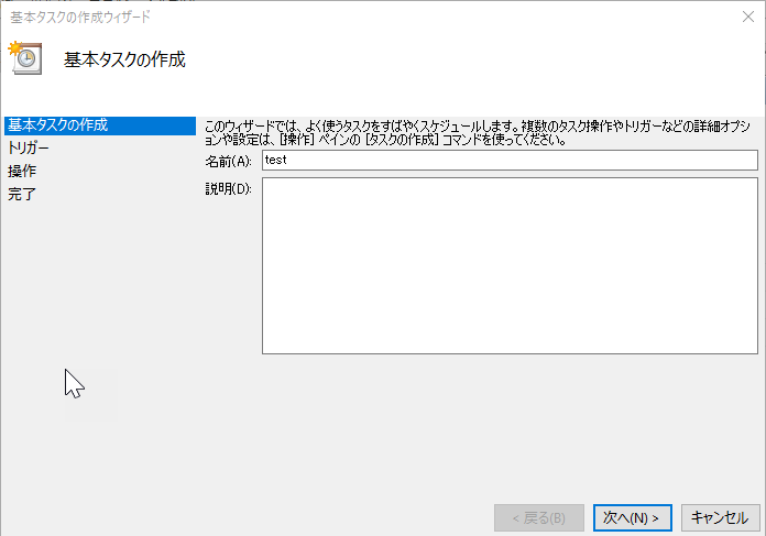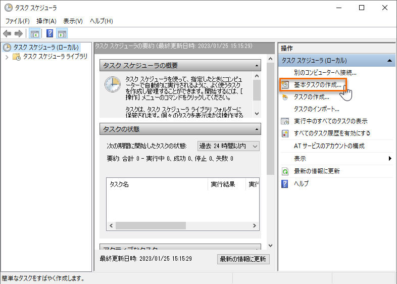タスクスケジューラライブラリで基本タスクの作成をクリックします。