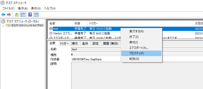 タスクスケジューラはWindowsが備えている機能で、コンピュータ上でタスクを定期的に実行することを可能にします。タスクスケジューラは、選択した条件(トリガー)を監視し、その条件が満たされたときにタスクを実行します。タスクスケジューラを利用して Viedocインポートアプリケーションまたは Viedocデータエクスポートアプリケーション のような外部アプリケーションを、自分のコンピュータで自動実行できます。