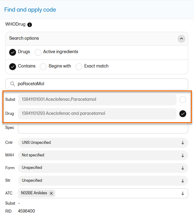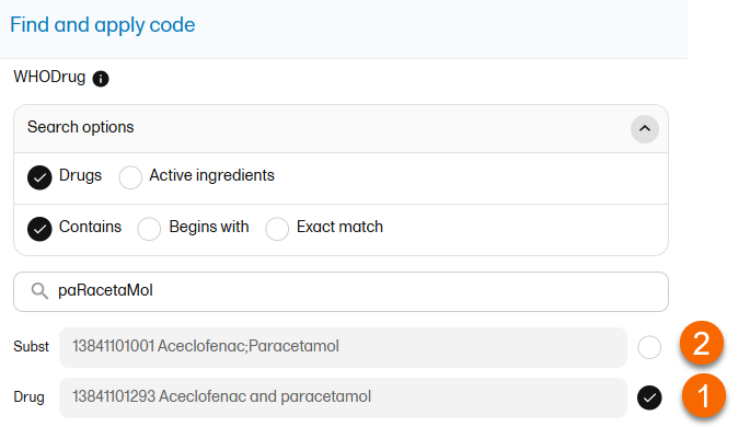 WHODrug: Note! To align with WHODrug terminology changes planned for 2026, labels in exports containing medical coding have been updated. These updates are available from Viedoc version 4.91.